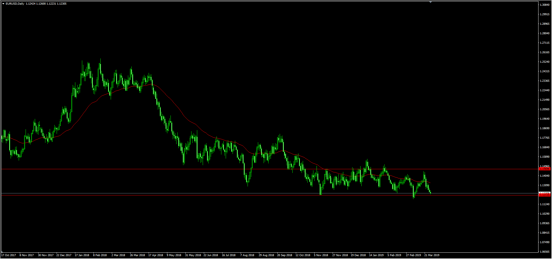 مازال اليورو دولار حائراً بين ضلعي الاتجاه العرضي، حيث هبطت الأسعار مرة أخرى إلى مستوى الضلع السفلي للاتجاه العرضي. ومازالت الاحتمالات ضعيفة على كسر هذا المستوى ( 1.12115 )