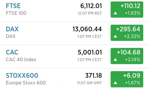 ارتفعت مؤشرات الاسهم في اوروبا مع مكاسب بسيطة لليورو اليوم