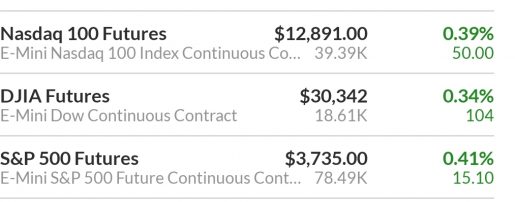 أما العقود المستقبلية لمؤشرات الاسهم الأمريكية فقد ارتفعت بحوالي 0.4% لتعوض من تراجعات أمس