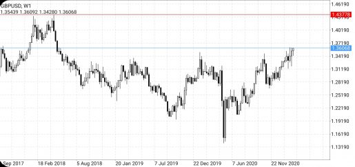 حيث نرى التدرج بالارتفاعات مرجح في تلك الحالة لاستهداف مستوياته التي سجلها عام 2018 عند حوالي 1.44 وفق الرسم