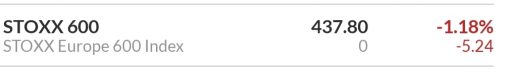 حيث في اوروبا فقد ستوكس 600 ما نسبته 1.18% مع تراجع داكس بحوالي 1.5%