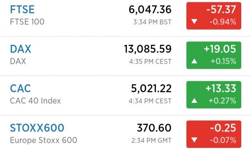 في اوروبا تباين أداء مؤشرات الاسهم كالتالي